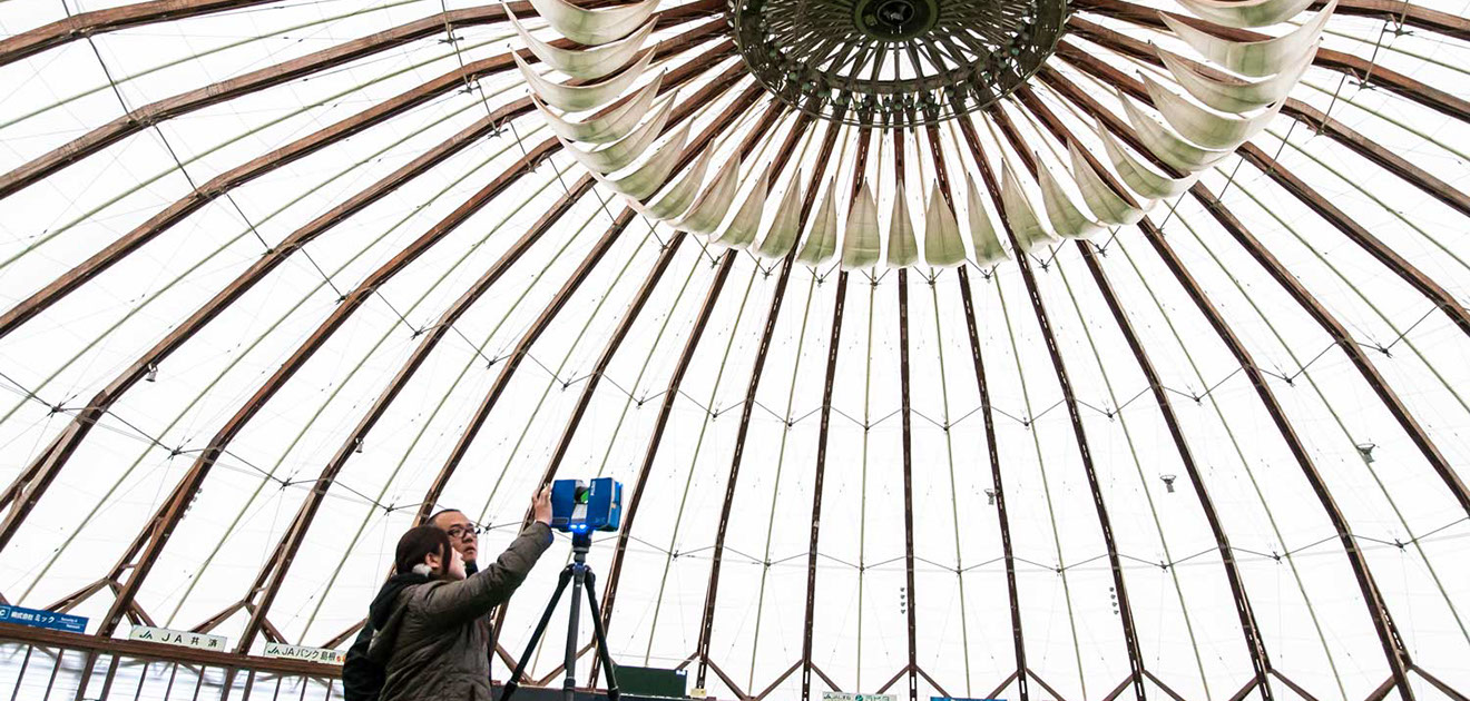 私たちはイメージを高い精度で共有するために、従来の測量計測に加え、3Dスキャナによる立体計測器を導入。図面作成はもちろん、具体的にイメージを可視化して確認・検討できるCGパース作成にも対応しています。