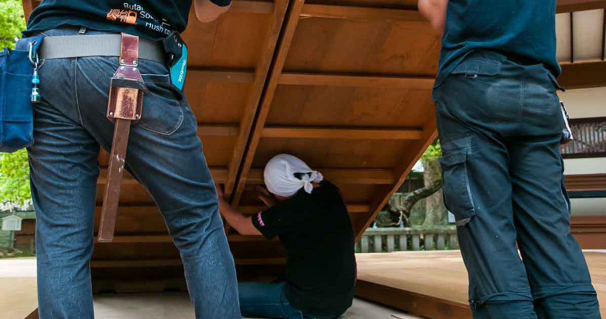 舞台や空間創造は、とてつもなく多くの人々の手を経てはじめて実現するものです。それぞれの役割を果たすスタッフ。彼らが今日まで蓄積してきた経験や技術を発揮させる環境づくりも私たちの欠かせない仕事です。会場は公演を行うために創られたホールだけではなく、野外会場や寺社仏閣ではそれぞれ独自のソリューションが求められます。また関わったスタッフ一人ひとりが蓄積した技術を次世代の担い手に伝えることも、私たちの重要な責務であると認識しています。